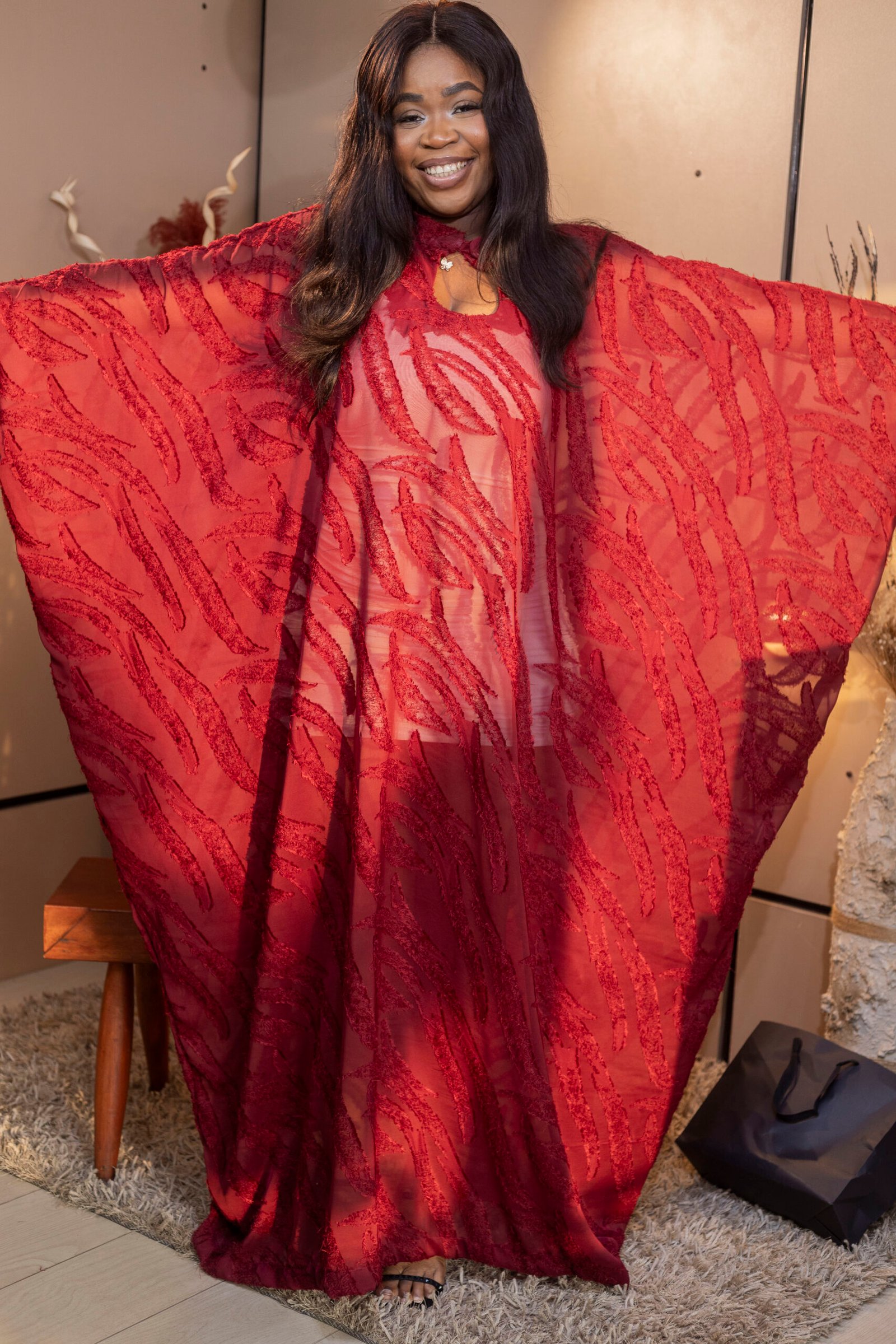 Step into sophistication with our luxurious Boubou in wine, a striking blend of style and versatility. This elegant garment is tailored for individuals who seek to redefine grace and comfort in their wardrobe. The rich wine-colored fabric exudes a timeless aura, making it perfect for formal occasions, casual outings, or cultural celebrations.