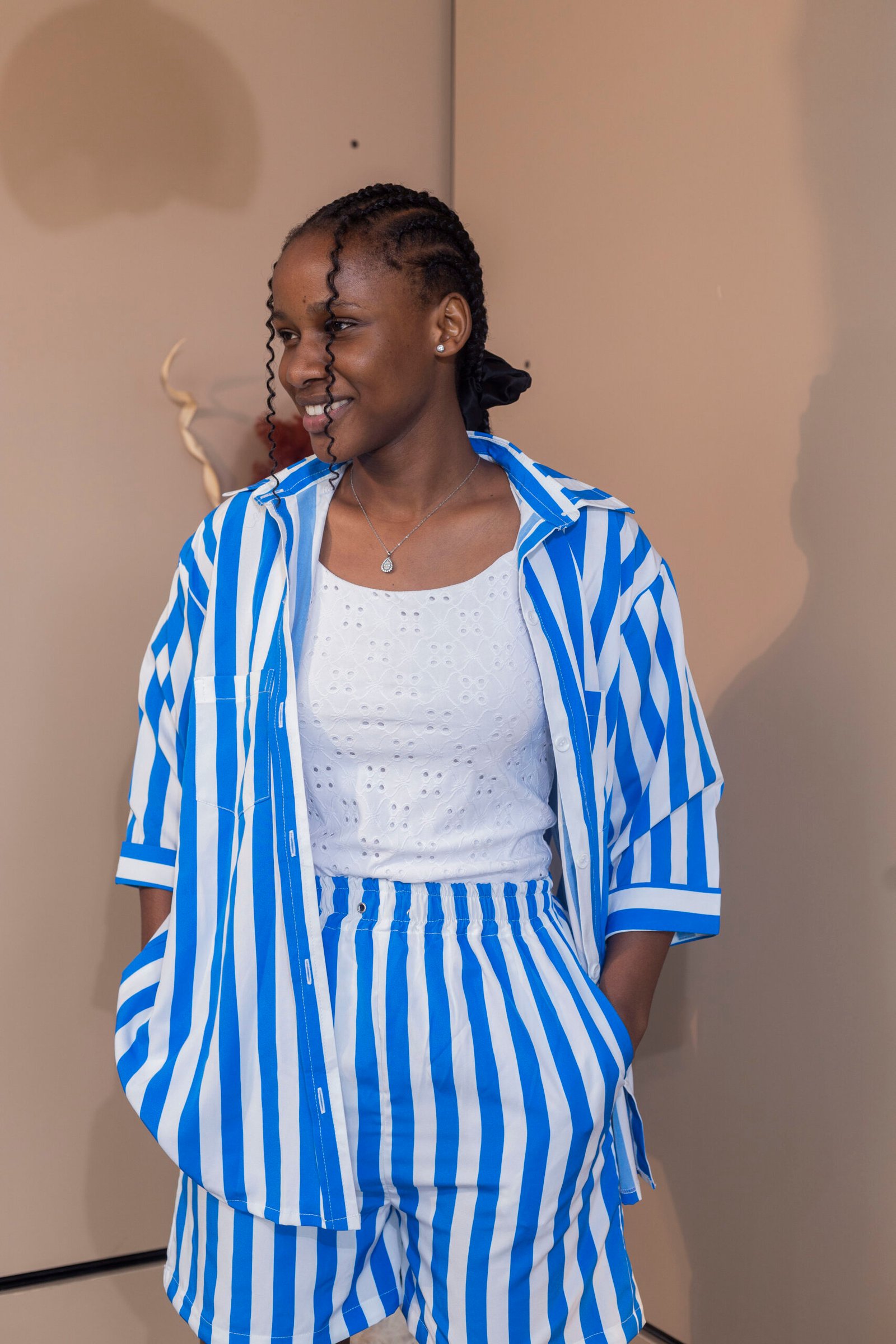 Crafted from high-quality materials, the blue and white striped fabric ensures durability without sacrificing comfort. The lightweight, breathable fabric is soft against your skin, making it ideal for warm weather. The meticulous stitching and attention to detail guarantee that each piece holds up to regular wear, providing you with a wardrobe staple that lasts. Plus, its timeless stripes lend a chic and contemporary touch that keeps you ahead of the fashion curve.